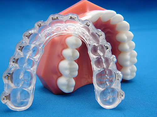 Bei dieser Methode werden die Brackets nach einem speziellen Abdruck zuerst auf ein Spezialgipsmodell geklebt. Mit einer Übertragungsschiene werden die Brackets in den Mund übertragen und geklebt. Der Vorteil dieser Methode liegt darin, dass die genaue Positionierung der Brackets am Modell und nicht im Mund der Patient:innen erfolgt.